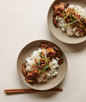 Ente mit cremigen Reis und süßer Sauce: https://esszettel.com/2017/04/29/ente-mit-cremigem-reis-und-suesser-sauce/