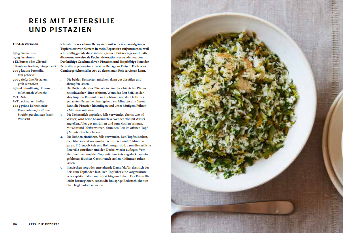 Sri Owen’s Buch gilt zurecht als das Standardwerk über Reis. Alleine die ersten knapp 80 Seiten über Reisanbau, die Reispflanze, über die Kultur und den Mythos und über Reisbauern, Händler und Wissenschaftler sind das Buch wert. An Rezepten kann man sich hier durch alle Länder der Erde kochen: man findet im Buch Rezepte aus Indonesien, Thailand, Japan, Korea, Russland, Afghanistan, Spanien, Italien, Brasilien und darüber hinaus. Viele Rezepte sind zudem auch gut im Alltag umsetzbar und die Zutaten dafür gut zu bekommen.